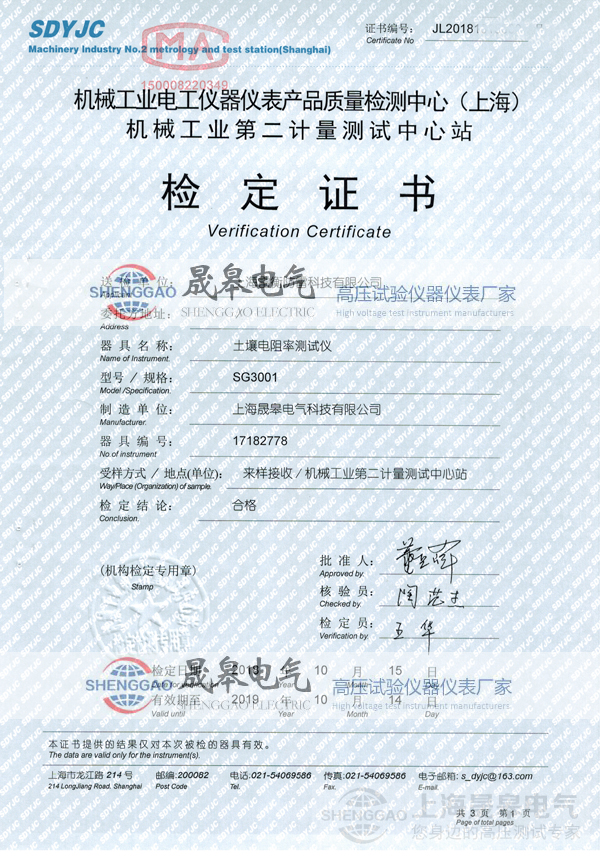 上海晟皋牌SG3001土壤電阻率測(cè)試儀又名接地電阻土壤電阻率測(cè)試儀、精密接地電阻測(cè)試儀等是檢驗(yàn)測(cè)量接地電阻常用儀表的常用儀表,采用了超大LCD灰白屏背光顯示和微處理機(jī)技術(shù),滿足二、三、四線測(cè)試電阻和土壤電阻率要求。電阻測(cè)量范圍:0.01Ω~30.00kΩ,接地電壓范圍:0.01~100.0V,同時(shí)存儲(chǔ)500組數(shù)據(jù),于電信、電力、氣象、機(jī)房、油田、電力配電線路、鐵塔輸電線路、加油站、工廠接地網(wǎng)、避雷針等。包檢定校準(zhǔn)合格,歡迎您的咨詢選購(gòu)!
